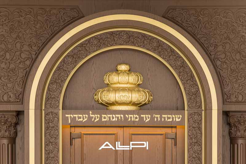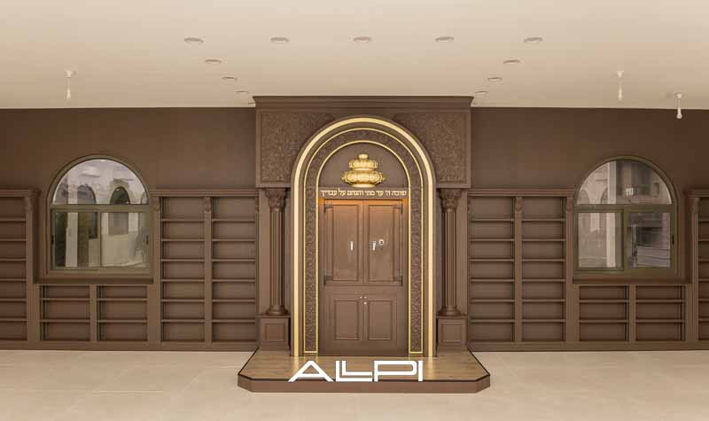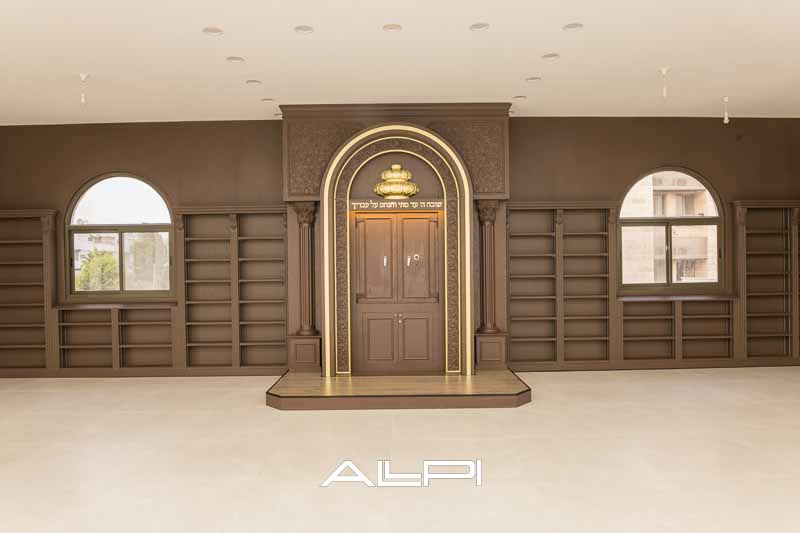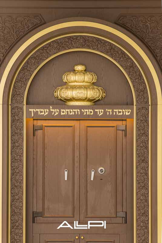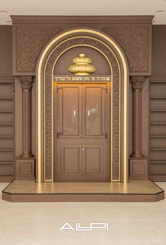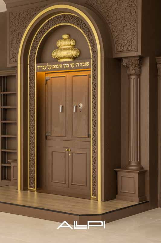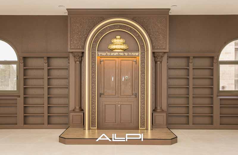 ארון קודש מפואר – בעיצוב ייחודי ומרשים, עשוי מעץ איכותי ברמה הגבוהה ביותר.