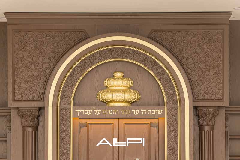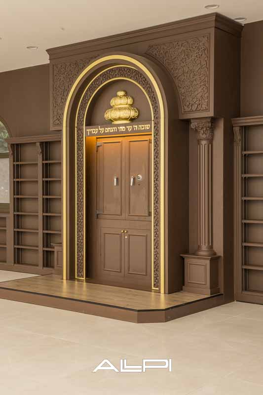 ארון קודש מפואר בעבודת עץ איכותית.