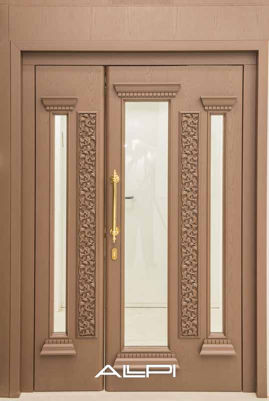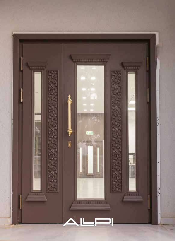 דלתות כניסה דו־כנפיות לבית הכנסת, המשדרות עוצמה ויוקרה.